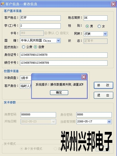 一卡通綜合管理平臺修改卡信息時(shí)出現(xiàn)如下提示