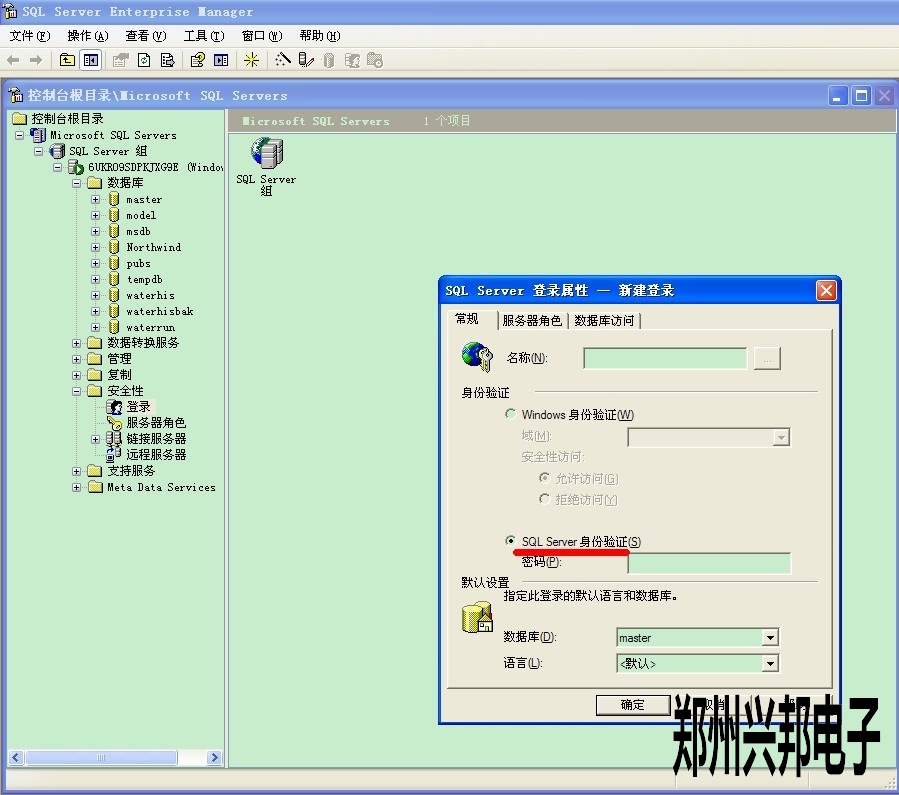 2000數(shù)據(jù)庫安裝后忘記密碼可以這樣操作進行重設(shè),進入2000數(shù)據(jù)庫后在安全性上右擊進入此畫面