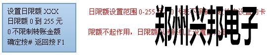 可查詢最近7天的消費匯總記錄,初始化和采集后還可查看匯總的內(nèi)容。 ⑧按8號鍵進入設(shè)置日限額界面,如下圖所示: u 待機界面按*號鍵進入查看匯總界面,如下圖所示: 可查看未采集的記錄數(shù)、卡底金、日限額和最近7天的每一天的匯總金額。