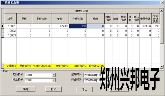 消費流水匯總查詢出每臺機器在某個時間段內的消費總額及消費總次數(shù)。