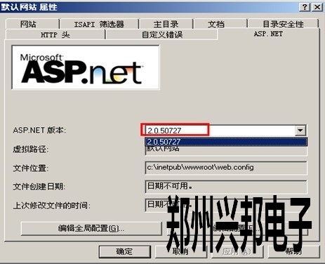 2)查看默認網(wǎng)站屬性中ASP.NET的版本,如下圖所示,必須是2.0.50727