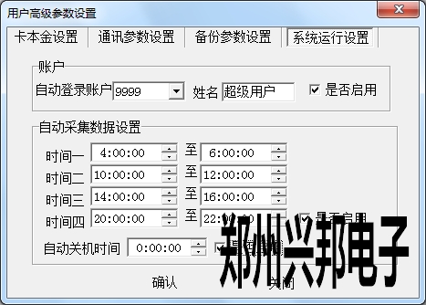 在使用興邦一卡通平臺進行用戶高級參數(shù)設置時包含卡本金設置、通訊參數(shù)設置、備份參數(shù)設置和系統(tǒng)運行設置四個參數(shù)設置。