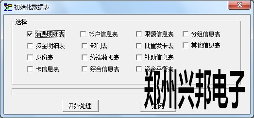 系統(tǒng)管理中數(shù)據(jù)初始化是可以選擇性的清空信息統(tǒng)計(jì)表的數(shù)據(jù),可以多選也可以只選擇一個(gè)。選擇下圖中的消費(fèi)明細(xì)表,點(diǎn)擊開(kāi)始處理,在是否初始化點(diǎn)擊是之后就可以對(duì)消費(fèi)明細(xì)表進(jìn)行清空,清空后表中無(wú)數(shù)據(jù),不影響其他表中的數(shù)據(jù)。