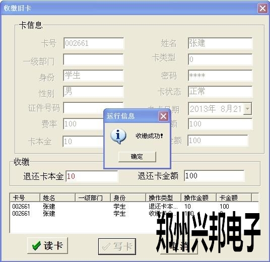 注銷卡就是收繳過的舊卡點擊【讀卡】出現(xiàn)卡片的基本信息后點擊【寫卡】,提示收繳成功后點擊【確定】即可。對于不用的舊卡可以使用此功能進行收繳,收繳一定要在數(shù)據(jù)采集完成之后進行。