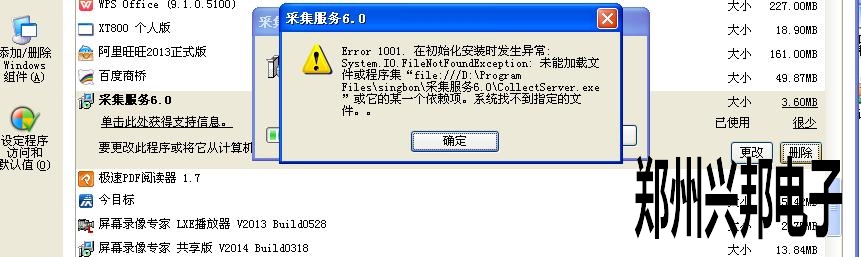 在卸載采集服務(wù)的時(shí)候,出現(xiàn)了Error:1001.在初始化安裝時(shí)發(fā)生異常,未能加載文件或程序集
