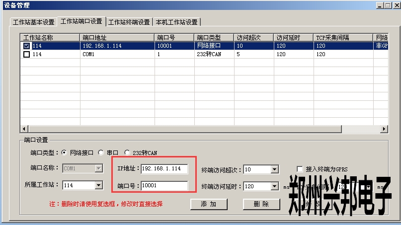 工作站端口設(shè)置完成后,在工作站終端設(shè)置中添加對應(yīng)的終端即可,如下圖所示: