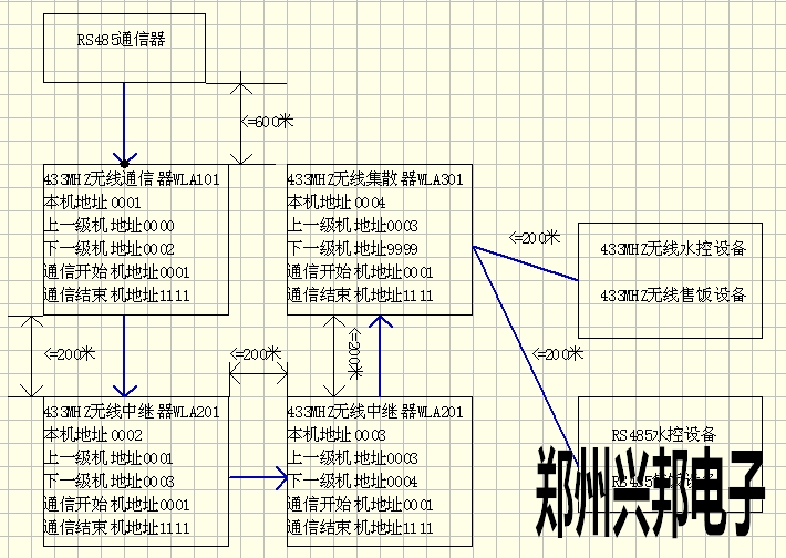 2、一個433MHZ無線通信器(WLA001)的無線覆蓋范圍為直經(jīng)400米(空曠地區(qū));只要在收發(fā)的范圍內(nèi),可連接的終端設(shè)備的臺數(shù)理論上沒有限制;地址號99989999,終端設(shè)備不可用,系統(tǒng)使用;