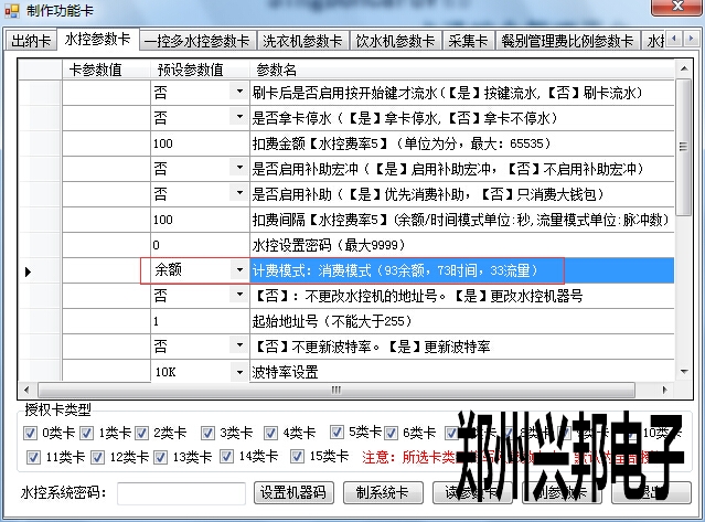 基于互聯(lián)網(wǎng)一卡通平臺的GPRS水控,在制卡中心--功能卡制作--水控參數(shù)卡中,可以看到有三種計(jì)費(fèi)模式