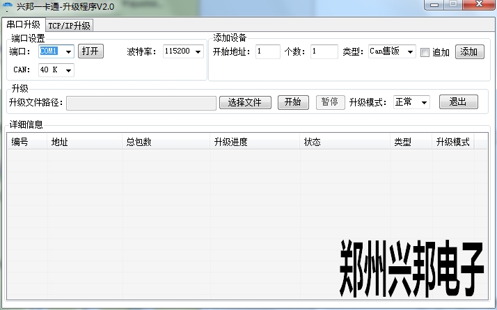 第二部:配置興邦在線升級工具中相應的端口、波特率9600、開始地址即終端機器號、個數(shù)項為1、類型選擇終端門禁一體機、升級模式選擇正常,點擊添加按鈕后、選擇相應的文件,點擊開始按鈕即可